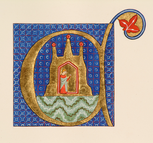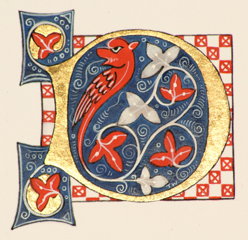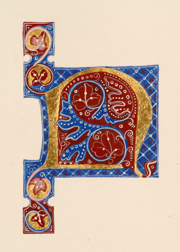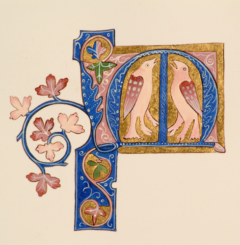 - Illuminated D. 24 carat gold leaf, shell gold and egg tempera.