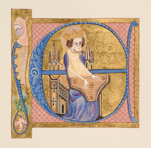 - Illuminated E – hand tooled 24 carat gold and egg tempera.